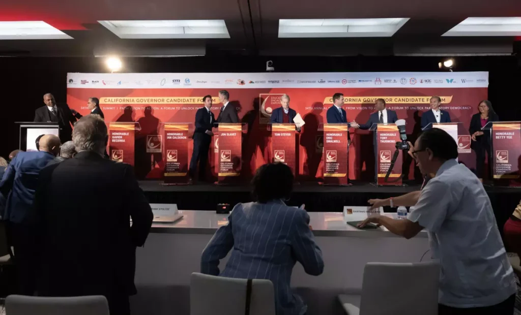 The L.A. Times recently published the article “California waits for a star to emerge in the 2026 race for governor”, featuring the 34th Annual Summit and Empowerment Congress brand as the context and backdrop for the article and photo (shown to the right). This is what the mission of the Empowerment Congress to educate, engage, and empower looks like.